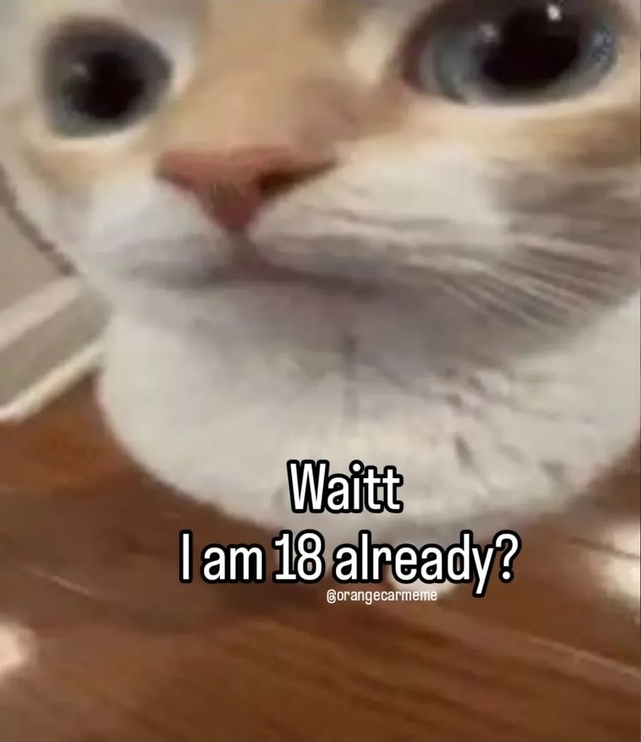 That's most prolly you right now loll. Crazy how you're already 18 tho, personally I suggest you to take a gap year, there ain't any shame in it you know. Anyways I don't think anything drastically changes when you become an adult, I mean you'll still live with your parents for at least 5 more years so yeah. But seriously, stay blessed , hope you get everything you desire and may all your dreams come true and as I always say thank you for being you. Also thank you so so so much for being my friend (questionable life choice but thanks). Even though you're an adult now don't forget that you're still a small fellow. Love you lil bro. ~ Lagger.